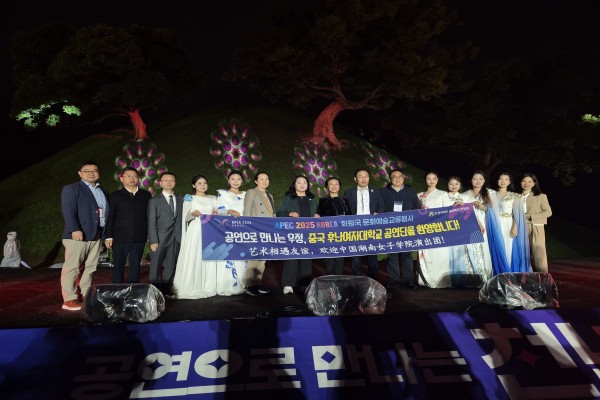 10月18日-19日,我校与安东科学大学共同组织表演团队,赴韩国庆州参加第32次亚太经合组织(APEC)峰会会员国文化艺术交流公演活动。该活动由2025 APEC韩国组委会与庆尚北道艺术文化团体总联合会共同主办。我校党委书记段美娟、韩国庆尚北道艺术文化团体总联合会会长兼我校客座教授权吾洙以及庆尚北道政府官员等共同出席开幕式,并观看了来自APEC各成员国的精彩演出。