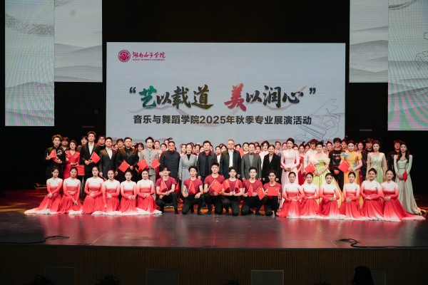 本网讯(音乐与舞蹈学院 曾益君)11月27日晚,湖南女子学院音乐与舞蹈学院“艺以载道,美以润心”教学成果展演在骄杨剧场成功举办,本次展演以美育为核心理念,深度融合中国传统音乐与红色经典作品,通过“艺术+思政”育人模式,生动展现了学院在教育教学与人才培养方面的丰硕成果。