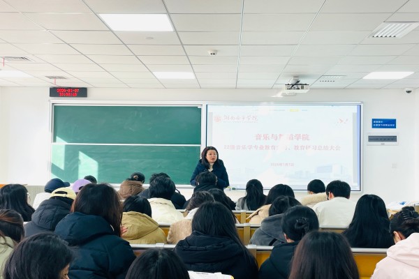 本网讯(音乐与舞蹈学院 袁娟)1月7日上午,音乐与舞蹈学院2022级音乐学专业教育实习总结大会在求实楼C303教室顺利举行。学院副院长王松、专业负责人罗莎、全体指导老师及2022级音乐学全体学生齐聚现场,共同回顾实习历程,总结实践成果。